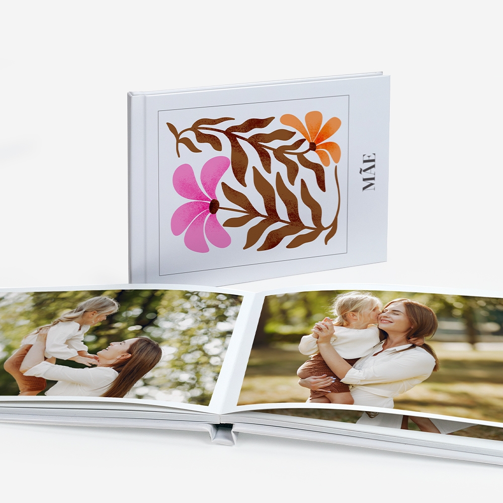 Álbum de cartão resistente, com folhas em branco. Estas possuem linhas para que possas escrever mensagens ao lado das tuas fotografias.