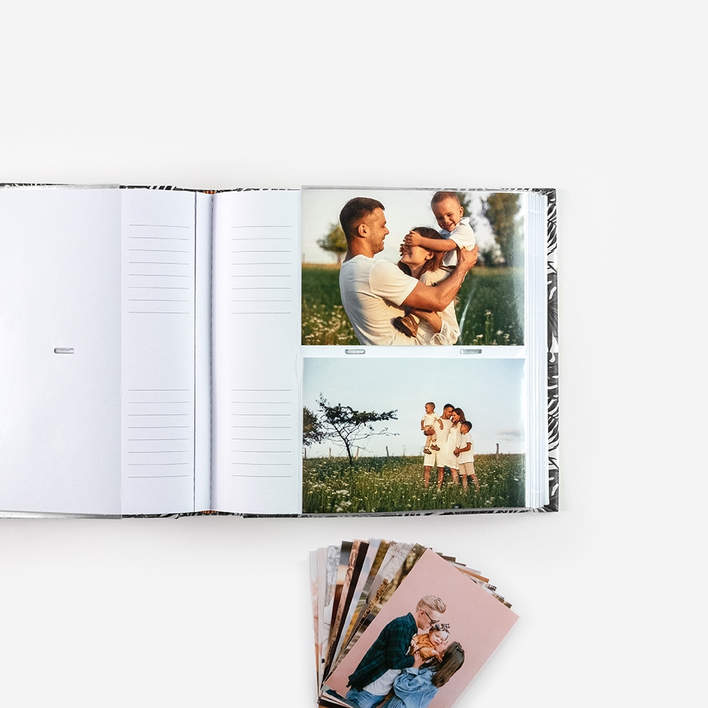O álbum é de bolsas - fáceis de usar e protegem as tuas fotos contra arranhões e outros danos que possam ocorrer ao longo do tempo.