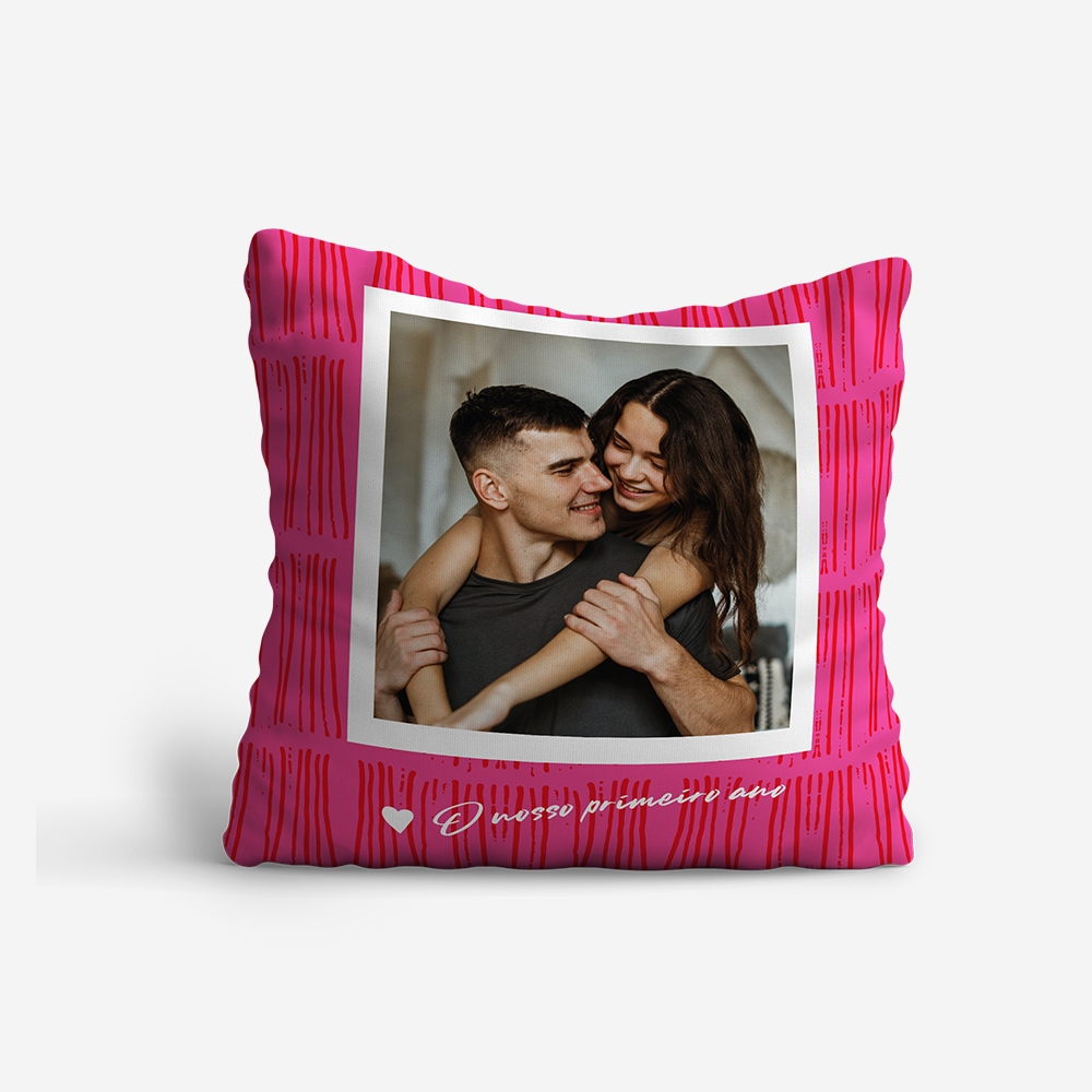 Esta almofada, fabricada em poliéster, oferece durabilidade e um toque macio. As cores vibrantes e a nitidez da imagem são garantidas pela impressão por sublimação térmica que se estende até às extremidades da almofada.