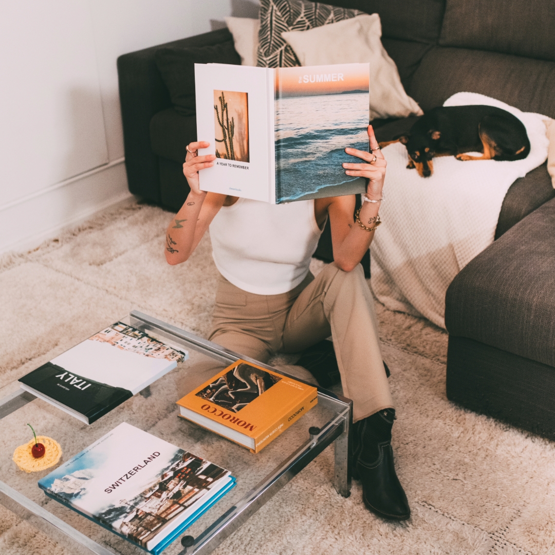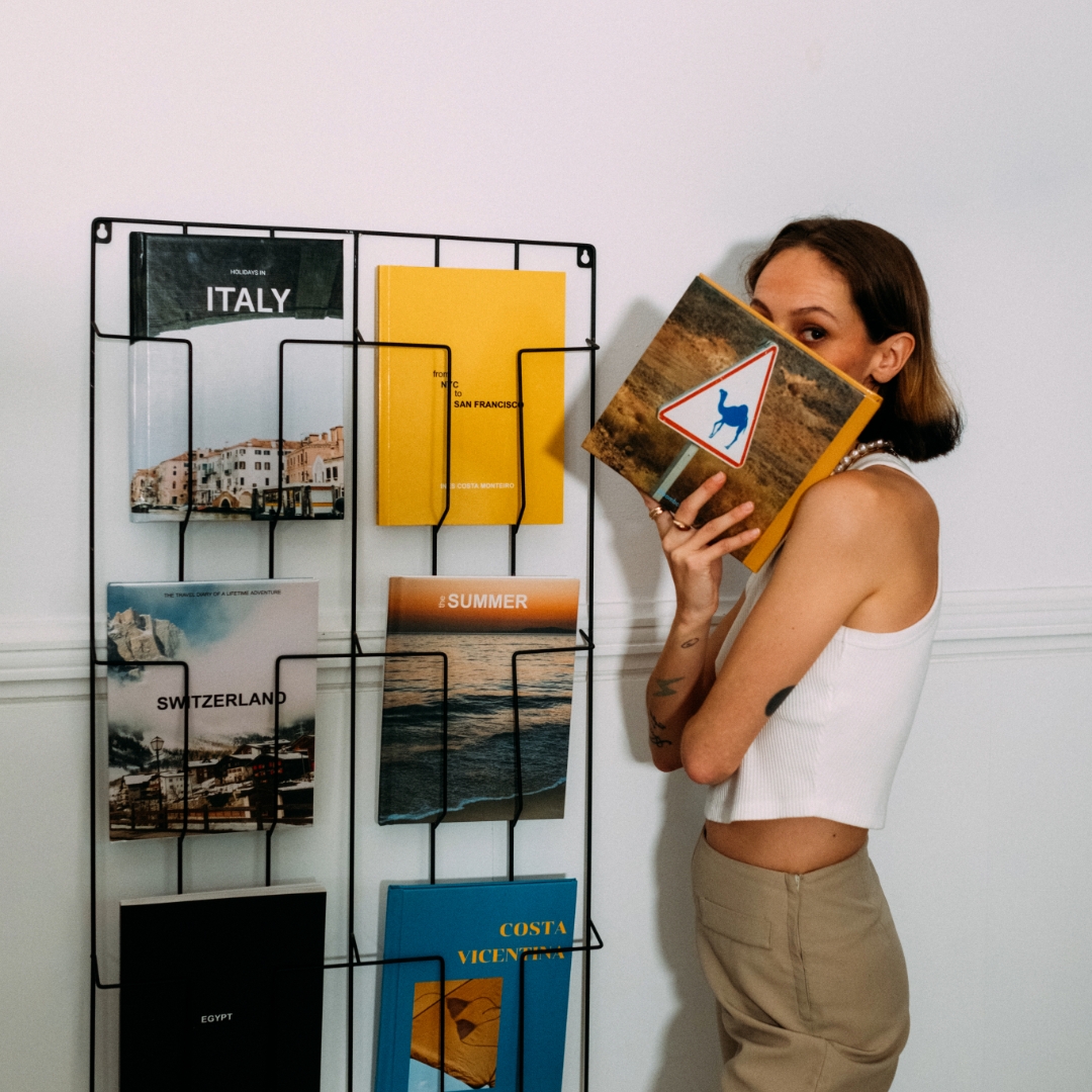 Os álbuns de fotos não são apenas para guardar memórias, também podem ser elementos decorativos incríveis! Coloca alguns álbuns na estante da sala ou na mesa de centro. Eles não só adicionam um toque pessoal à decoração, como também são ótimos para momentos de conversa quando amigos e família te visitam. Escolhe capas que combinem com a paleta de cores da tua sala para um visual harmonioso.