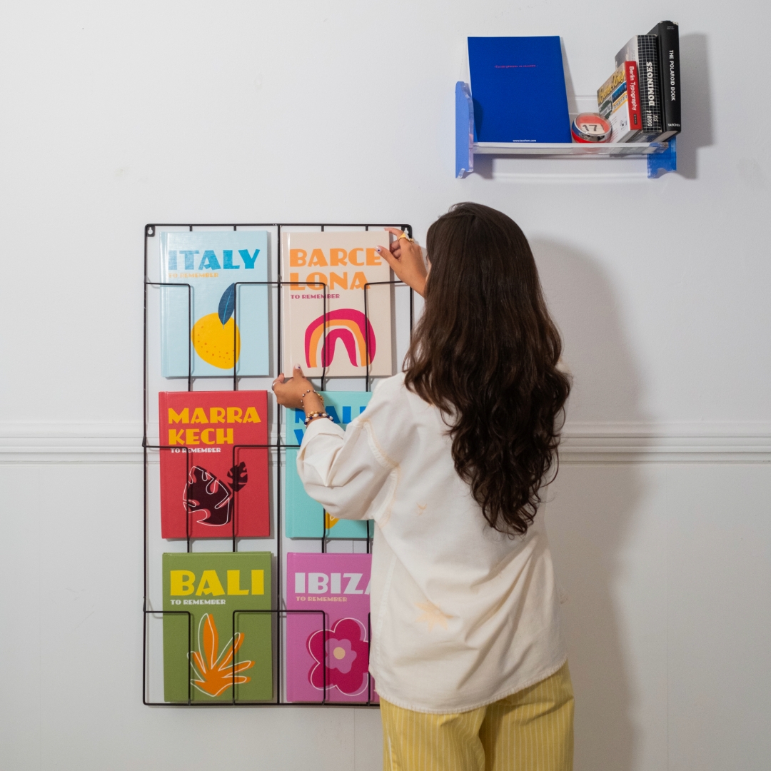 Dica extra: Usa suportes de livros para manter os álbuns em pé e bem visíveis.