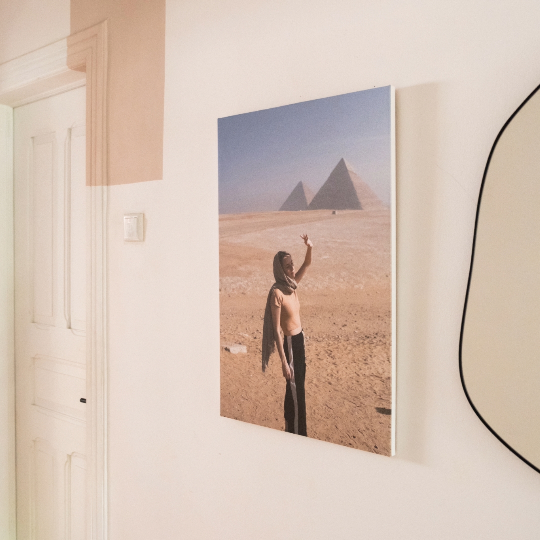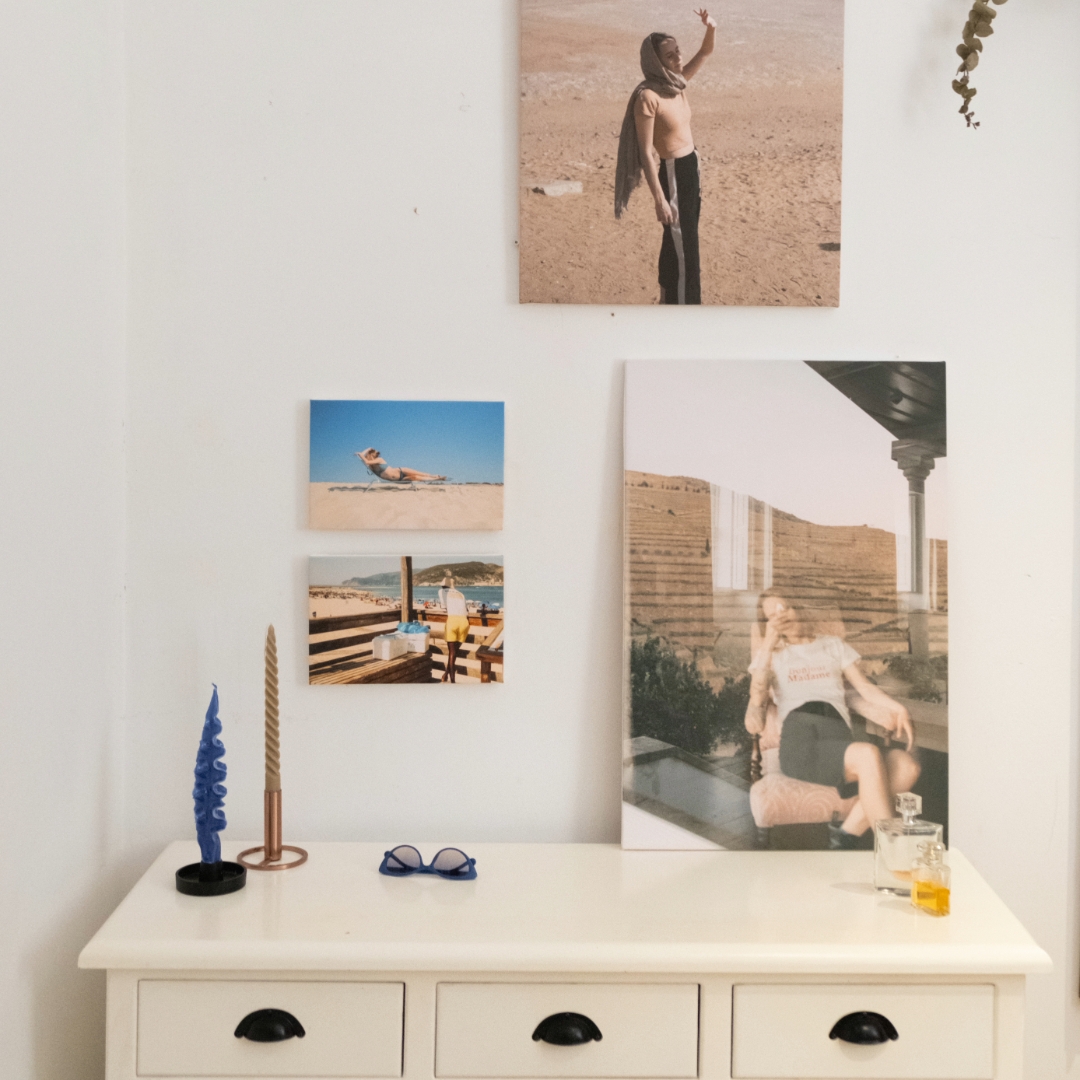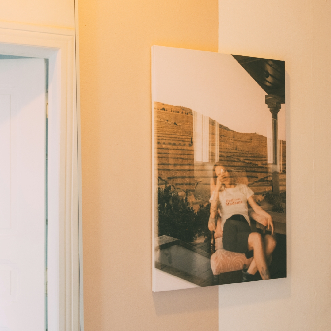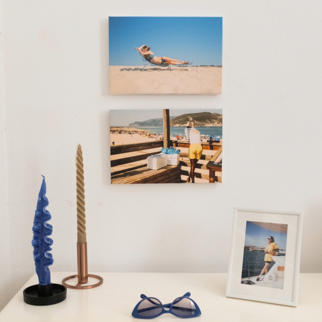 Outra opção fantástica é transformar as tuas fotos em telas. As telas dão um toque artístico e sofisticado ao espaço. Escolhe uma foto panorâmica deslumbrante ou um retrato significativo para destacar numa parede principal. As telas também são perfeitas para criar uma peça central acima do sofá ou da cama.