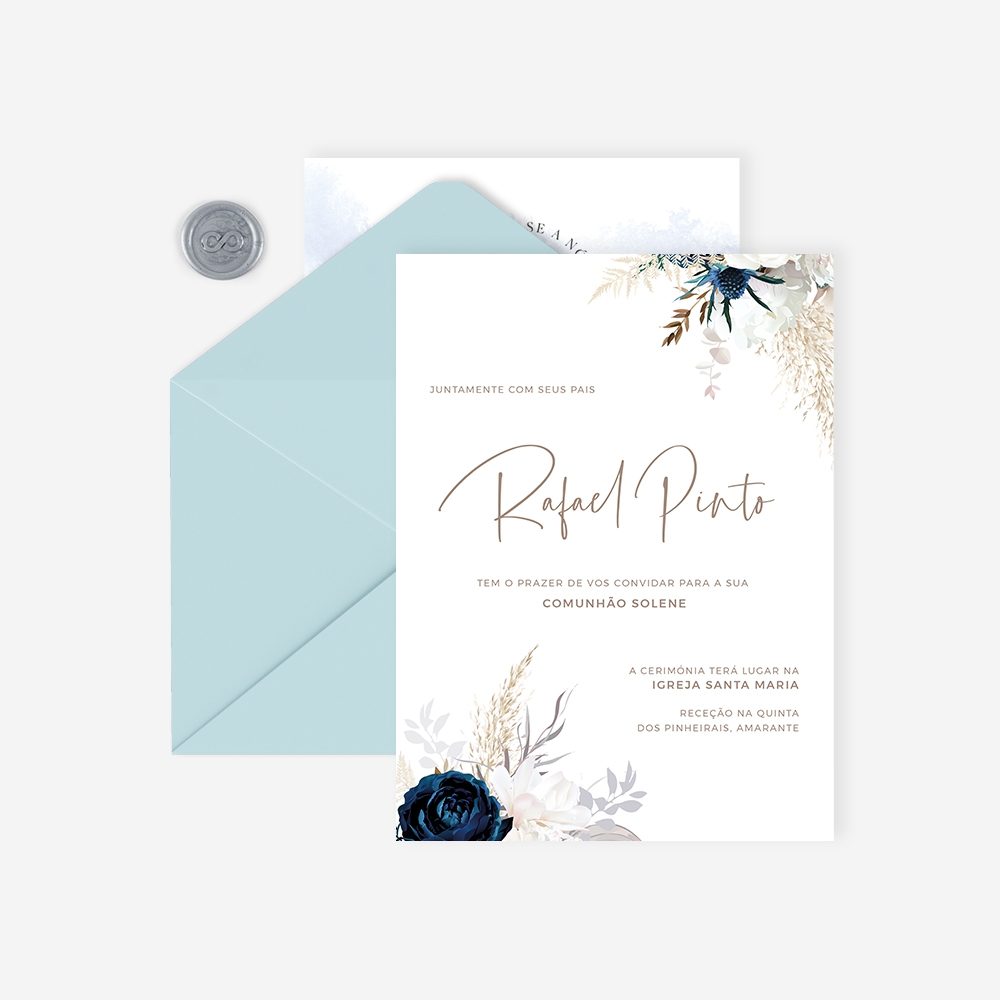 Os teus Convites de Comunhão serão impressos em papel tintoretto, que oferece alta qualidade, conferindo um aspecto único e artístico a cada impressão.