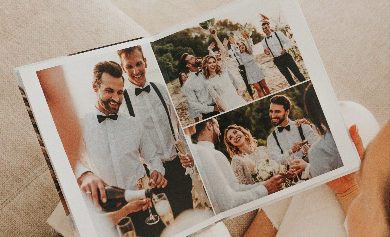 Seleciona as tuas melhores fotos, escolhe o modelo de álbum e usa o nosso editor online para dispor as imagens como quiseres. Em poucos passos crias um álbum de casamento único. Sabe como criar o teu álbum de fotos na nossa página de tutoriais.