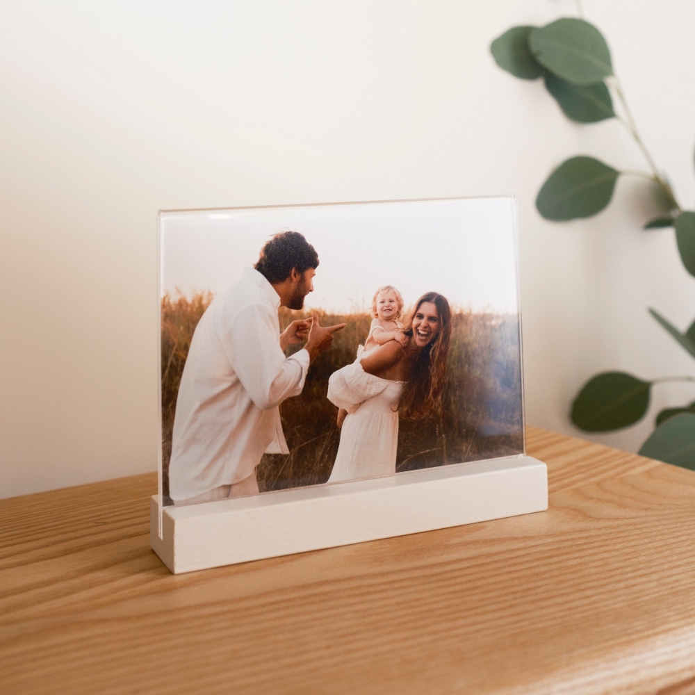 As molduras até 15x20 cm incluem suporte para colocação em mesa. A partir de 20x30 cm, são projetadas para serem penduradas na parede, tornando-se o destaque perfeito para qualquer ambiente.