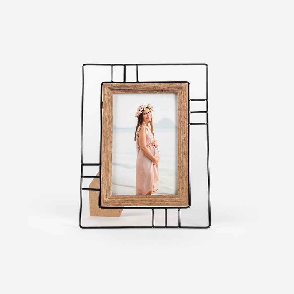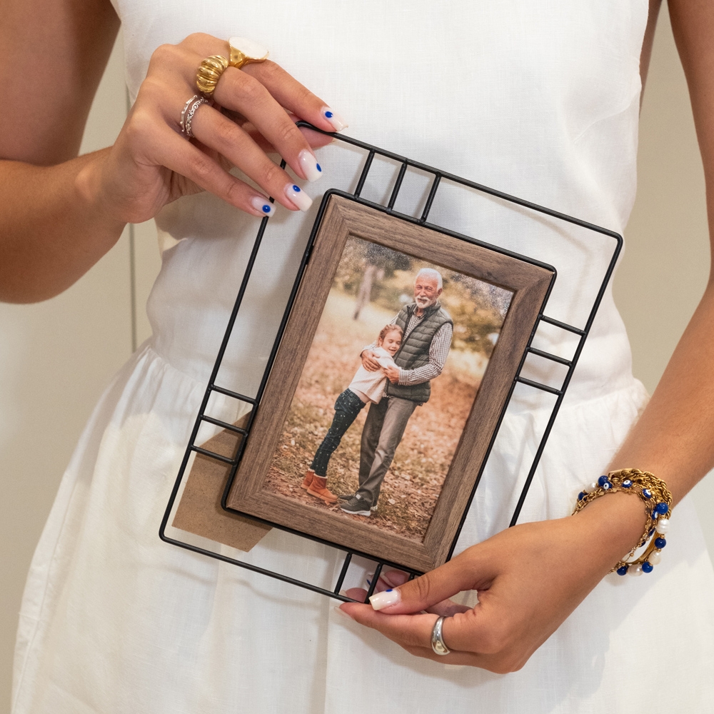 Moldura de alta qualidade, fabricada numa estrutura de metal preto, garantindo durabilidade e um acabamento perfeito para destacar as tuas fotos.