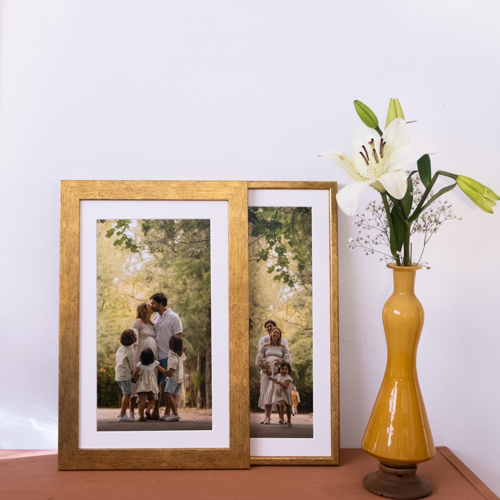 As molduras até 15x20 cm incluem suporte para colocação em mesa. A partir de 20x30 cm, são projetadas para serem penduradas na parede, tornando-se o destaque perfeito para qualquer ambiente.