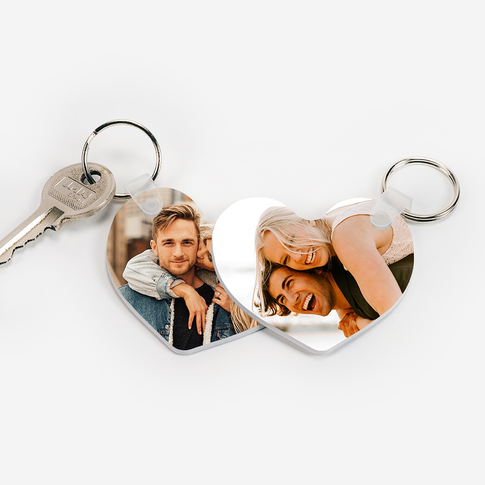 Com formato de coração 5 x 5 mm e personalização total (100%) em ambas as faces, este porta-chaves transforma qualquer foto ou frase num presente romântico e inesquecível.